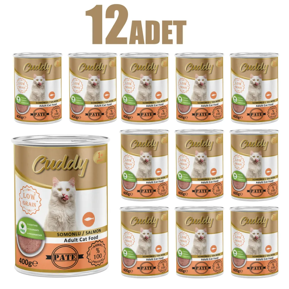 12 Adet Cuddy Kıyma Somon Etli Yetişkin Kedi Konservesi 400 g