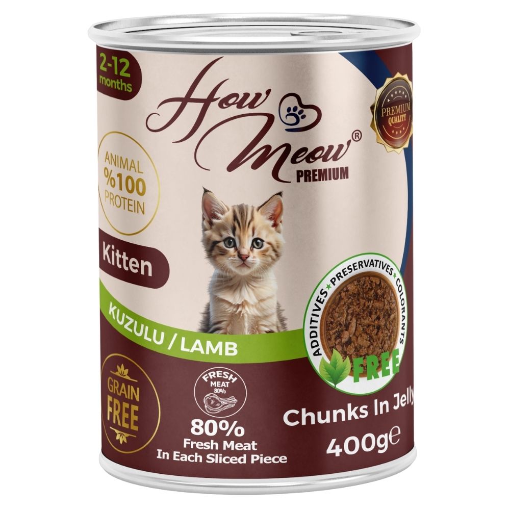 12 Adet How Meow Parça Yavru Kedi Konservesi Kuzulu 400 g - Görsel 1