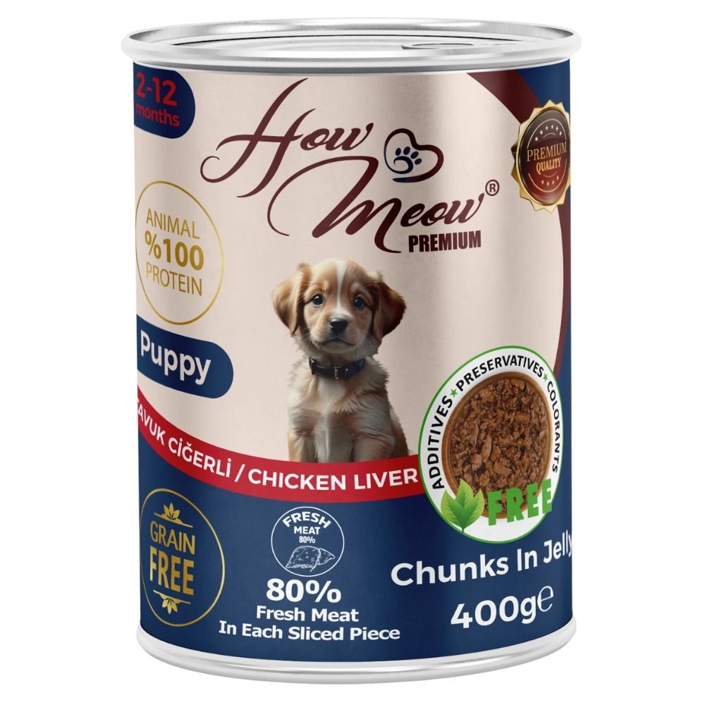 12 Adet How Meow Parça Yavru Köpek Konservesi Tavuk Ciğerli 400 g