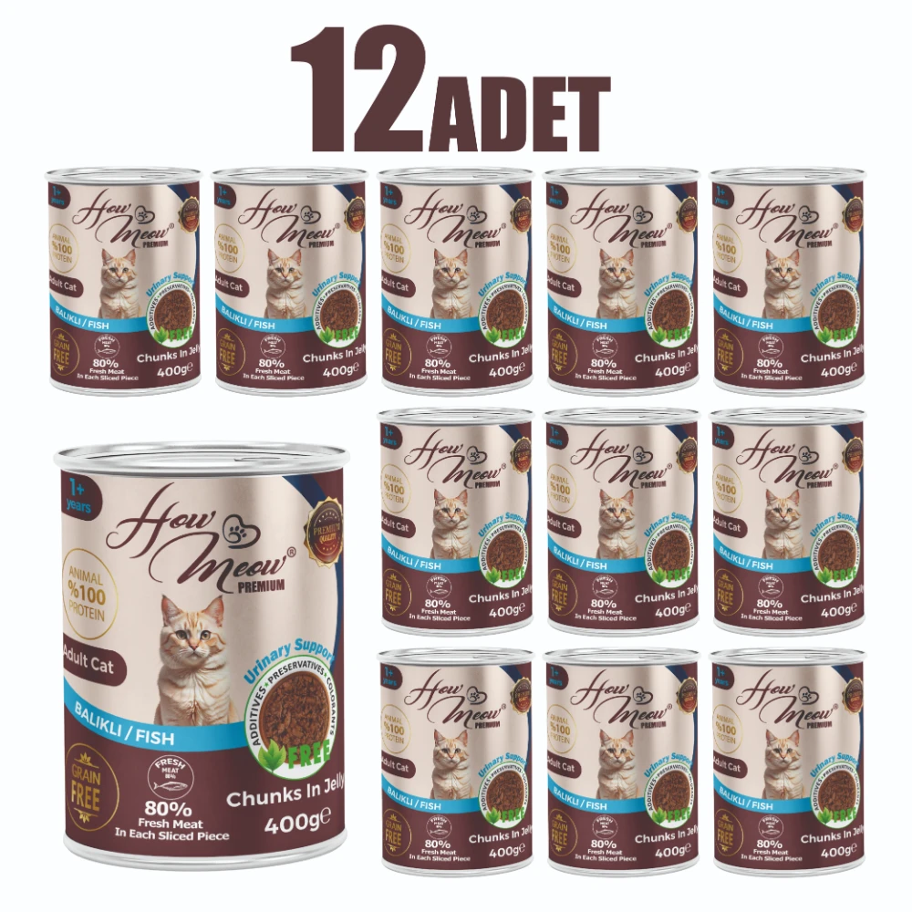 12 Adet How Meow Parça Yetişkin Kedi Konservesi Balıklı 400 g