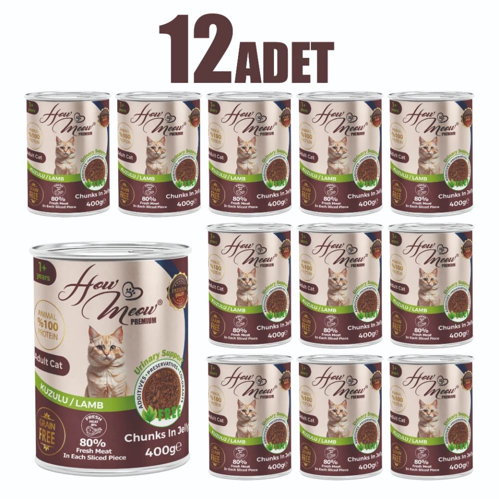 12 Adet How Meow Parça Yetişkin Kedi Konservesi Kuzulu 400 g